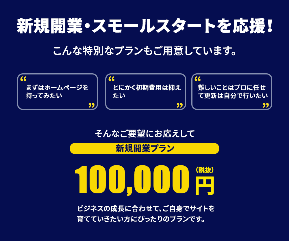 私たちのホームページ制作は、お客様のビジネスを成功に導くための3つの基本プランからお選びいただけます。