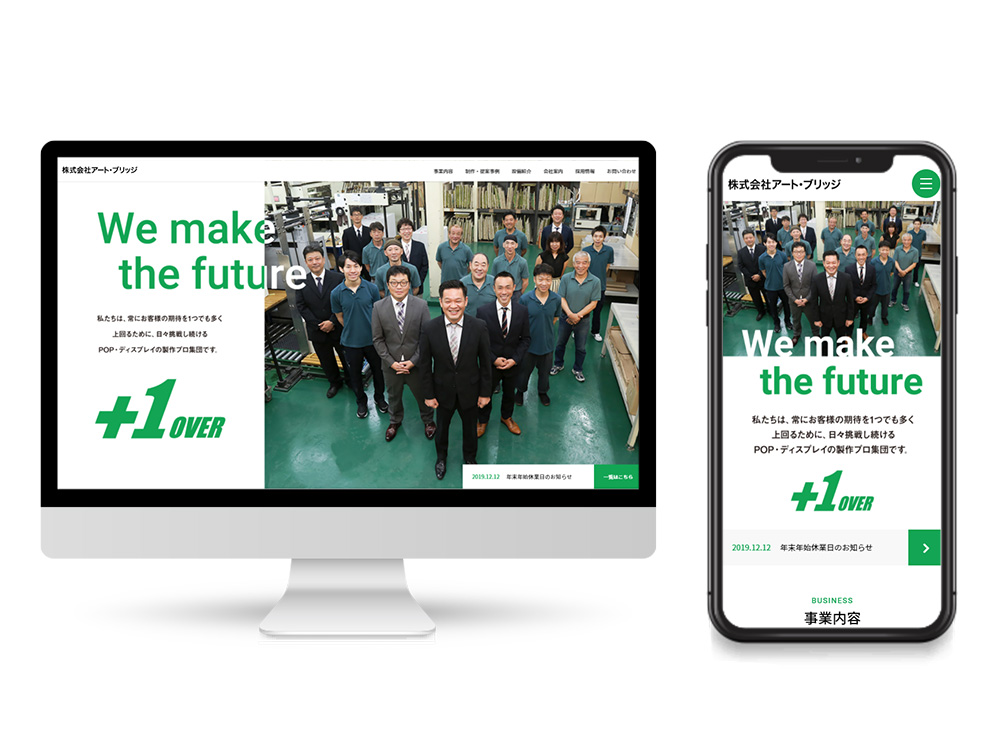 東大阪市に本社を置くアートブリッジ様は、アイデアを生かしたディスプレイの提案とトムソン加工の高い技術力がある会社で、POP・ディスプレイのプロ集団です。東京支店の拡大に向け、人材の採用を強化するため、ホームページのリニューアルをいたしました。