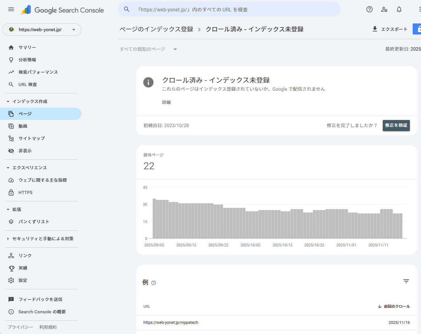 - 「クロール済み – インデックス未登録」の一覧を見る