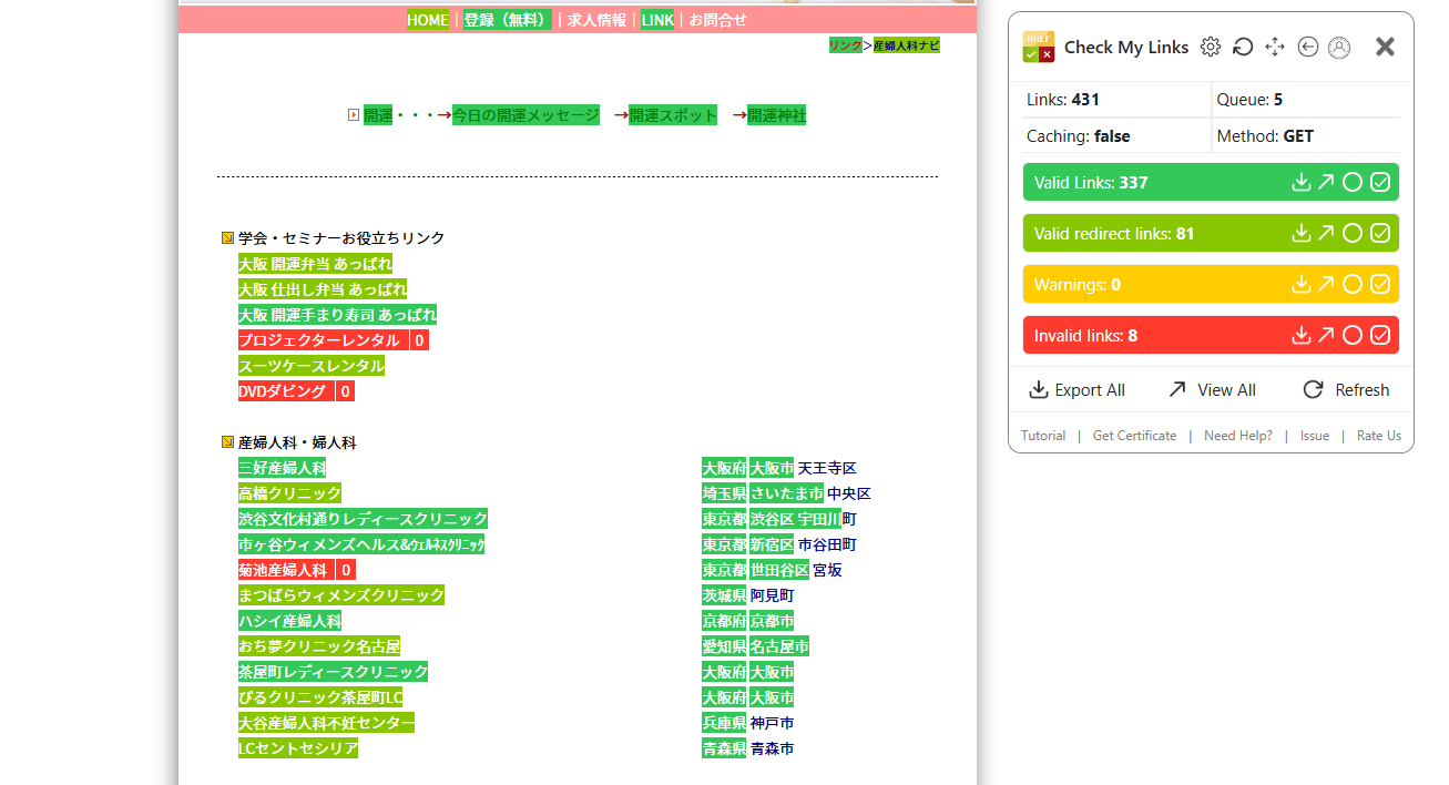 【リンク切れチェッカーでチェックした結果】