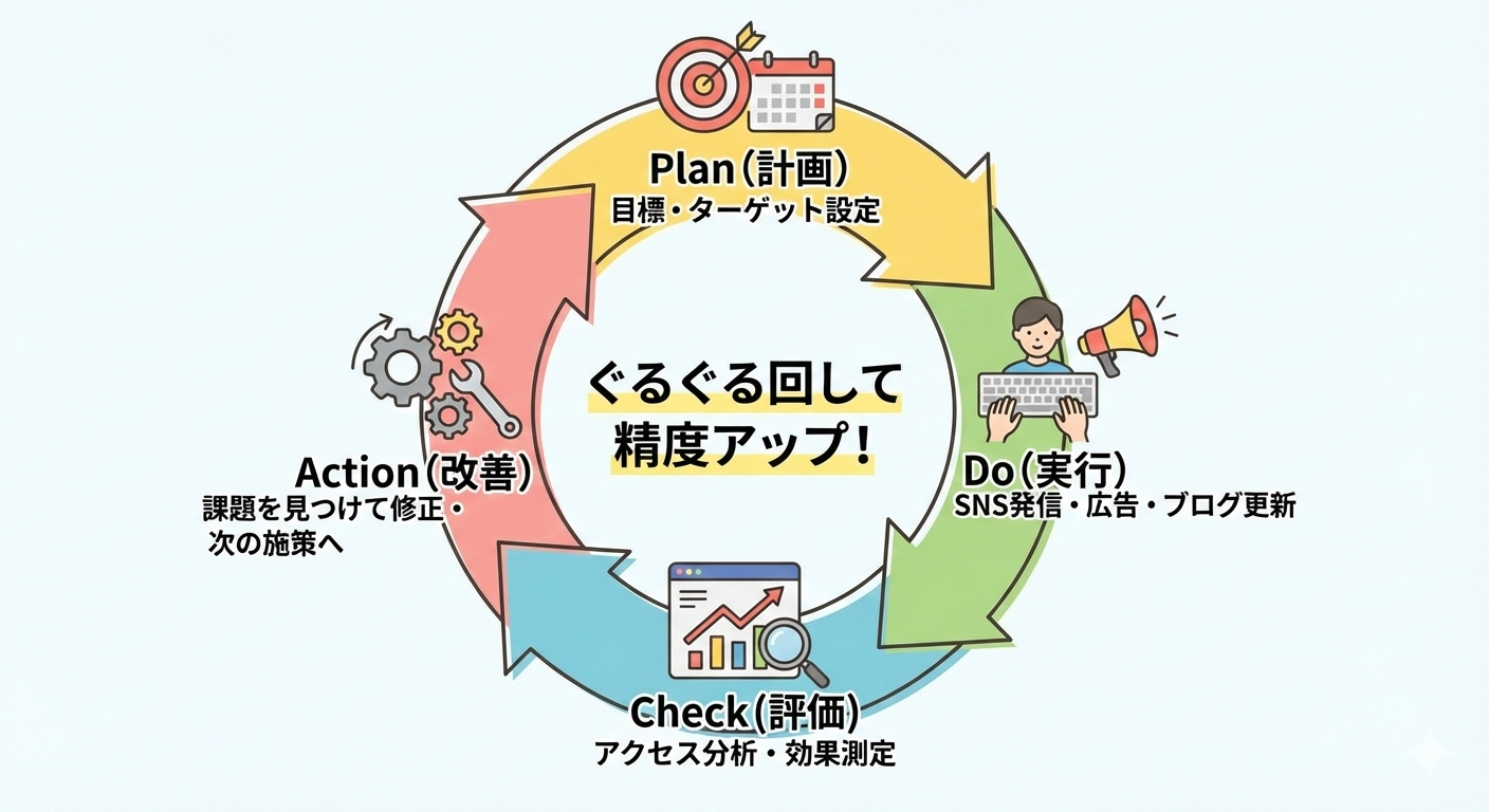 このサイクルをくるくると回し続けることで、集客の精度はどんどん上がっていきます。